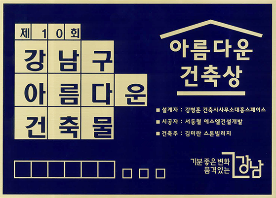 강남의 건축문화 발전과 품격향상에 기여한 바를 인정받아 강남구 아름다운 건축상에 선정되었습니다.